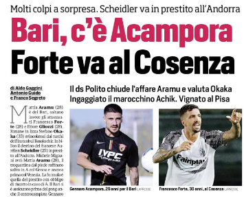 L’edizione odierna de “Il Corriere dello Sport” si sofferma sulle trattative dell’ultima giornata di serie B. Mattia Aramu è del...