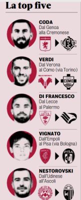 Gazzetta dello Sport: “Chiuso il calciomercato. La top five degli acquisti in serie B”
