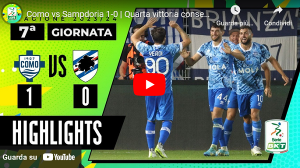 Termina 1-0 il match tra Como e Sampdoria. Ecco gli highlights del match: