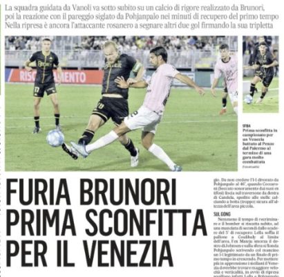 L'edizione odierna de "Il Gazzettino" si sofferma sulla sconfitta del Venezia contro il Palermo. Pohjanpalo stavolta non basta, Brunori si...