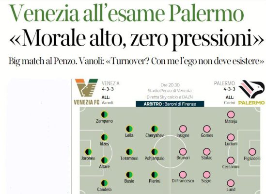 L'edizione odierna de "La Gazzetta dello Sport" si sofferma sulla gara tra Venezia e Palermo e ha stilato le probabili...