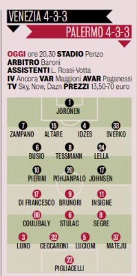 L'edizione odierna di Tuttosport si sofferma sulla gara di oggi tra Venezia e Palermo stilando le probabili formazioni. QUI VENEZIA...