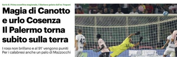 L'edizione odierna de "La Gazzetta dello Sport" si sofferma sul Palermo sgonfiato da Canotto contro il Cosenza. Una magia di...