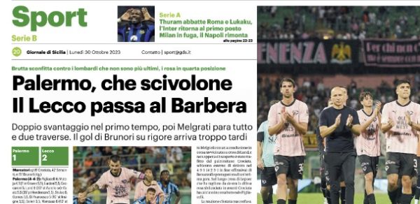 L'edizione odierna de "Il Giornale di Sicilia" si sofferma sulla sconfitta rimediata ieri al Barbera dal Palermo contro il Lecco....