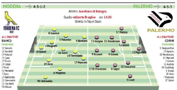 L'edizione odierna de "Il Giornale di Sicilia" si sofferma sulle probabili formazioni del match tra Modena e Palermo.