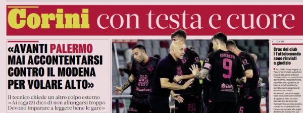L'edizione odierna de "La Repubblica" si sofferma sulle parole rilasciate ieri da Corini. Per spiegare il clima che si percepisce...