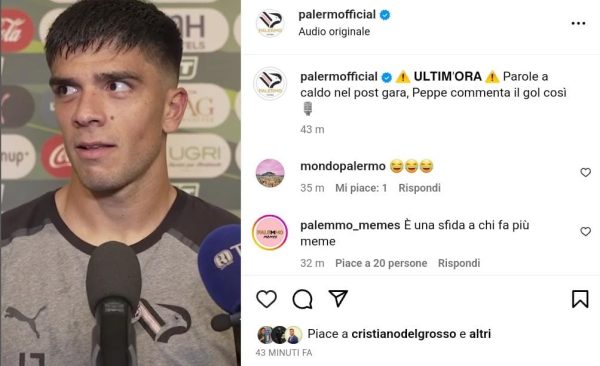 Il Palermo, tramite un post pubblicato su instagram, ironizza sull'intervista post gara di Aurelio dopo il gol decisivo in Palermo-Sudtirol....