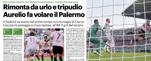 L'edizione odierna de "La Gazzetta dello Sport" si sofferma sul Palermo che ha vinto in rimonta contro il Sudtirol. Il...