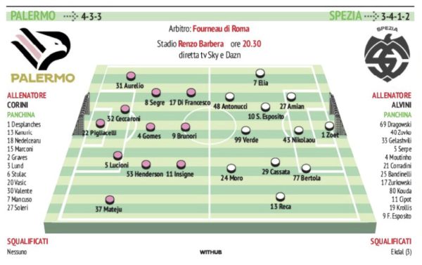 L'edizione odierna di Tuttosport si sofferma sulla gara di oggi tra Palermo e Spezia riportando le probabili formazioni.