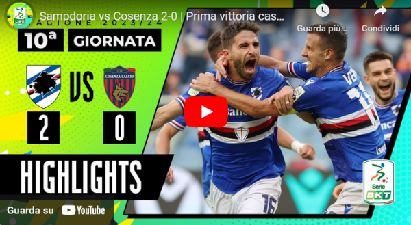 Termina 2-0 il match di serie B tra Sampdoria e Cosenza. Ecco gli highlights del match: