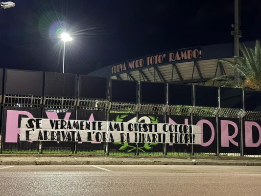È apparso uno striscione da parte della Curva Nord 12 al Renzo Barbera. Il messaggio è inequivocabilmente rivolto ad Eugenio...