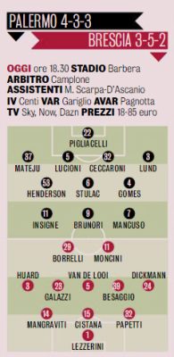 L'edizione odierna de "Il Corriere dello Sport" si sofferma sulle probabili formazioni del match tra Palermo e Brescia. Allenatore: Corini....