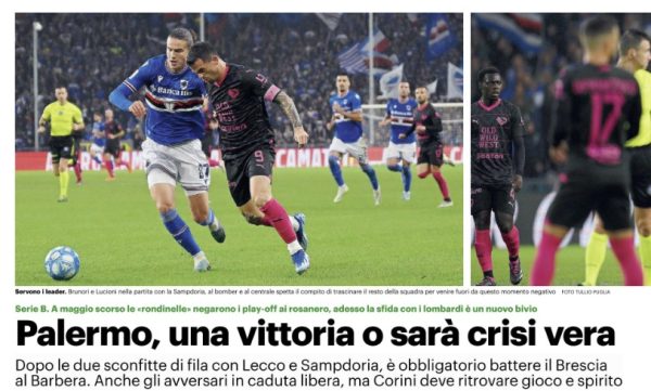 L'edizione odierna de "Il Giornale di Sicilia" si sofferma sulla gara di oggi tra Palermo e Brescia. Quattro giorni per...