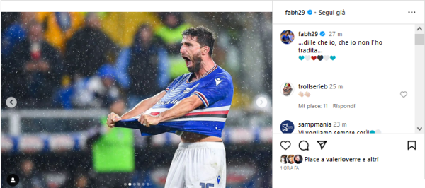 Dopo la vittoria di ieri contro il Palermo, l'attaccante della Sampdoria Sebastiano Esposito ha voluto commentare attraverso Instagram il successo...
