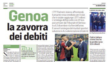 L'edizione odierna de "Il Secolo XIX" si sofferma sul Genoa e i debiti ereditati dalla precedente società. Sono giorni di...