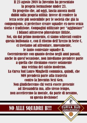 Attraverso un comunicato sulla propria pagina Facebook, gli ultras dell'Arezzo si sono schierati contro le squadre b e, nella fattispecie,...