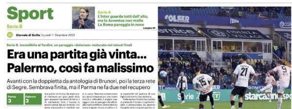 Gazzetta dello Sport: “Parma come al luna park. Due gol dopo il 90. E Pecchia fa festa, ripreso il Palermo di un super Brunori”