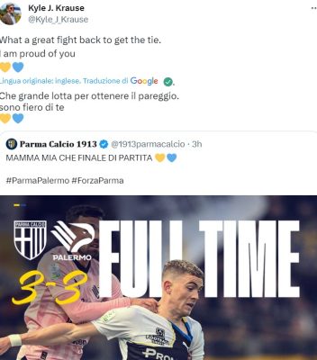 Il presidente del Parma, Kyle Krause, si ritiene molto soddisfatto per come la sua squadra abbia pareggiato contro il Palermo....