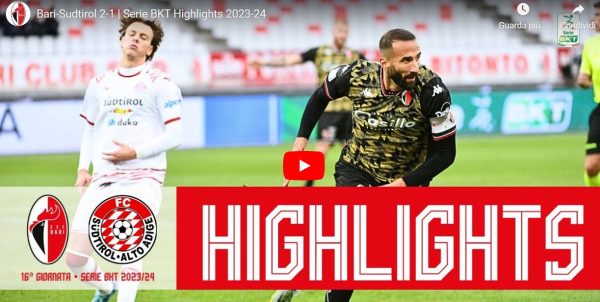 Termina 2-1 la partita di Serie B tra Bari e Sudtirol. Ecco gli highlights del match: https://www.youtube.com/watch?v=R0oSR82bN_k