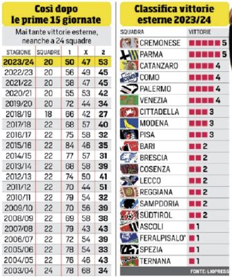 Corriere dello Sport: “Serie B, più vittorie esterne (53) che successi interni (50). Crolla il fattore campo, Stroppa e Vivarini super”