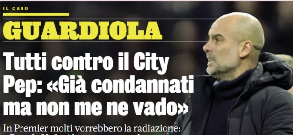 L'edizione odierna de "La Gazzetta dello Sport" si sofferma sulla vicenda relativa al Manchester City. Pep Guardiola non si è...