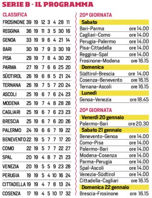 L'edizione odierna de "Il Corriere dello Sport" si sofferma sul programma della 20^ giornata di serie B e la classifica...