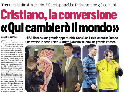 L'edizione odierna de "Il Corriere dello Sport" si sofferma sulla presentazione di Cristiano Ronaldo all'Al-Nassr. Se non è stata apoteosi...