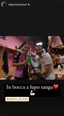 Attraverso le proprie storie Instagram Roberto Floriano ha salutato Andrea Accardi, passato oggi ufficialmente al Piacenza. In alto la foto...