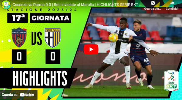 Termina 0-0 il match di serie B tra Parma e Cosenza. Ecco gli highlights: