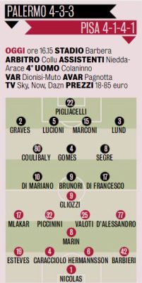L'edizione odierna di Tuttosport si sofferma sulle probabili formazioni del match di oggi tra Palermo e Pisa.