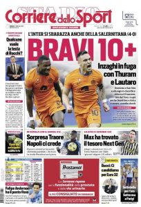 L'edizione odierna de "Il Corriere dello Sport" dedica la prima pagina all'Inter. che ieri ha vinto contro la Salernitana.