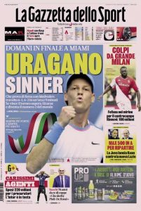 L'edizione odierna de "La Gazzetta dello Sport" dedica la prima pagina a Sinner.