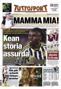 L'edizione odierna di Tuttosport dedica la prima pagina a Kean.