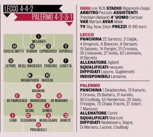 L'edizione odierna de "Il Corriere dello Sport" si sofferma sulle probabili formazioni del match di oggi tra Lecco e Palermo....