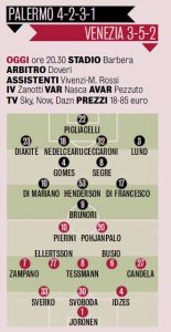 L'edizione odierna de "La Gazzetta dello Sport" si sofferma sulle probabili formazioni di Palermo-Venezia.