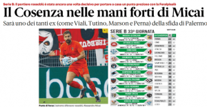 L'edizione odierna de "La Gazzetta del Sud" si sofferma sulla sfida tra Cosenza e Palermo e sul portiere Micai, uno...