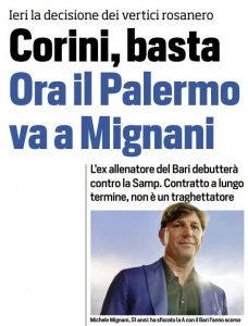 L'edizione odierna di Tuttosport si sofferma sull'esonero di Corini e l'arrivo di Mignani al Palermo. Alle 15.22 il comunicato del...