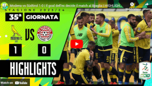 Termina 1-0 il match di serie B tra Modena e Sudtirol. Il Modena ha conseguito un'importante vittoria in casa, sconfiggendo...