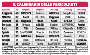 L'edizione odierna de "Il Corriere dello Sport" si sofferma sul campionato di serie B e la lotta salvezza. Un rompicapo...