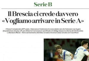L'edizione odierna di "Brescia Oggi" si sofferma sulle ambizioni del club di Cellino in vista dei playoff. Il Brescia, sotto...