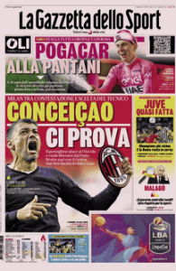 L'edizione odierna de "La Gazzetta dello Sport" dedica la prima pagina al Milan.
