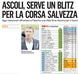 L'edizione odierna de "Il Corriere Adriatico" si sofferma sulla gara che l'Ascoli affronterà oggi contro il Palermo e sulle chance...