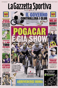 L'edizione odierna de "La Gazzetta dello Sport" dedica la prima pagina al giro d'Italia.