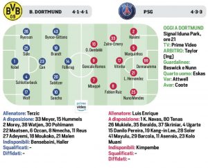 L'edizione odierna de "Il Corriere dello Sport" ha stilato le probabili formazioni del match di oggi tra Dortmund e Psg...