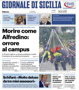 Prima pagina Giornale di Sicilia: “Morire come Alfredino, orrore al campus”
