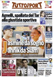 L'edizione odierna di Tuttosport dedica la prima pagina alle due stelle italiane del tennis, Sinner e Paolini.