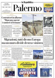 L'edizione odierna de "La Repubblica - Palermo" dedica la prima pagina all'allarme dei costruttori a Palermo.