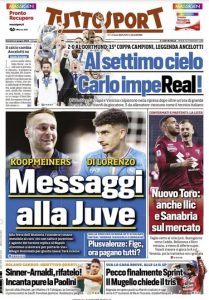 L'edizione odierna di Tuttosport dedica la prima pagina al Real vincitore della Champions.