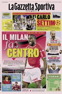 L'edizione odierna de "La Gazzetta dello Sport" dedica la prima pagina al Milan.