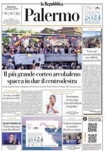 L'edizione odierna de "La Repubblica - Palermo" dedica la prima pagina al Pride tenutosi ieri in città.